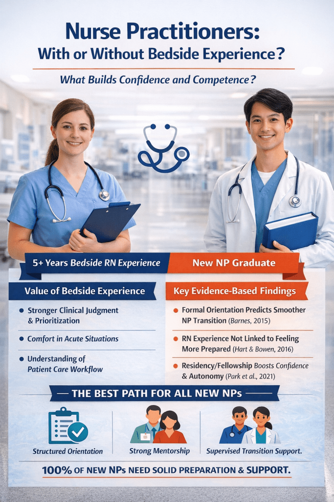 This is where I believe the profession needs to be more honest. We sometimes argue too much about who has “enough” experience and not enough about whether we are truly preparing and supporting new nurse practitioners. A new NP with years of bedside experience may still struggle if orientation is weak. On the other hand, a new NP without extensive floor experience may still grow into a strong clinician if the education is solid and the transition-to-practice support is strong.